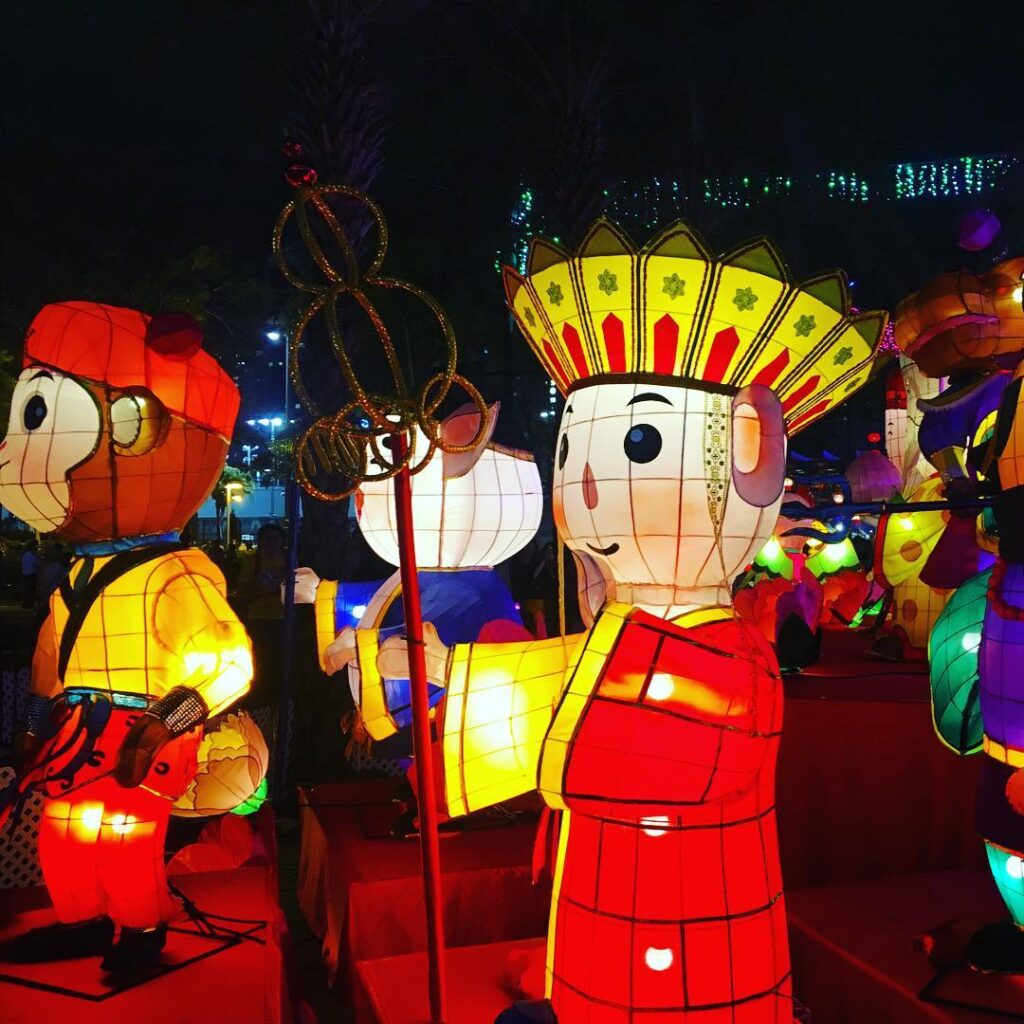 Monkey and Monk from Journey to the West in lantern form in VictoriaPark Hong Kong for the