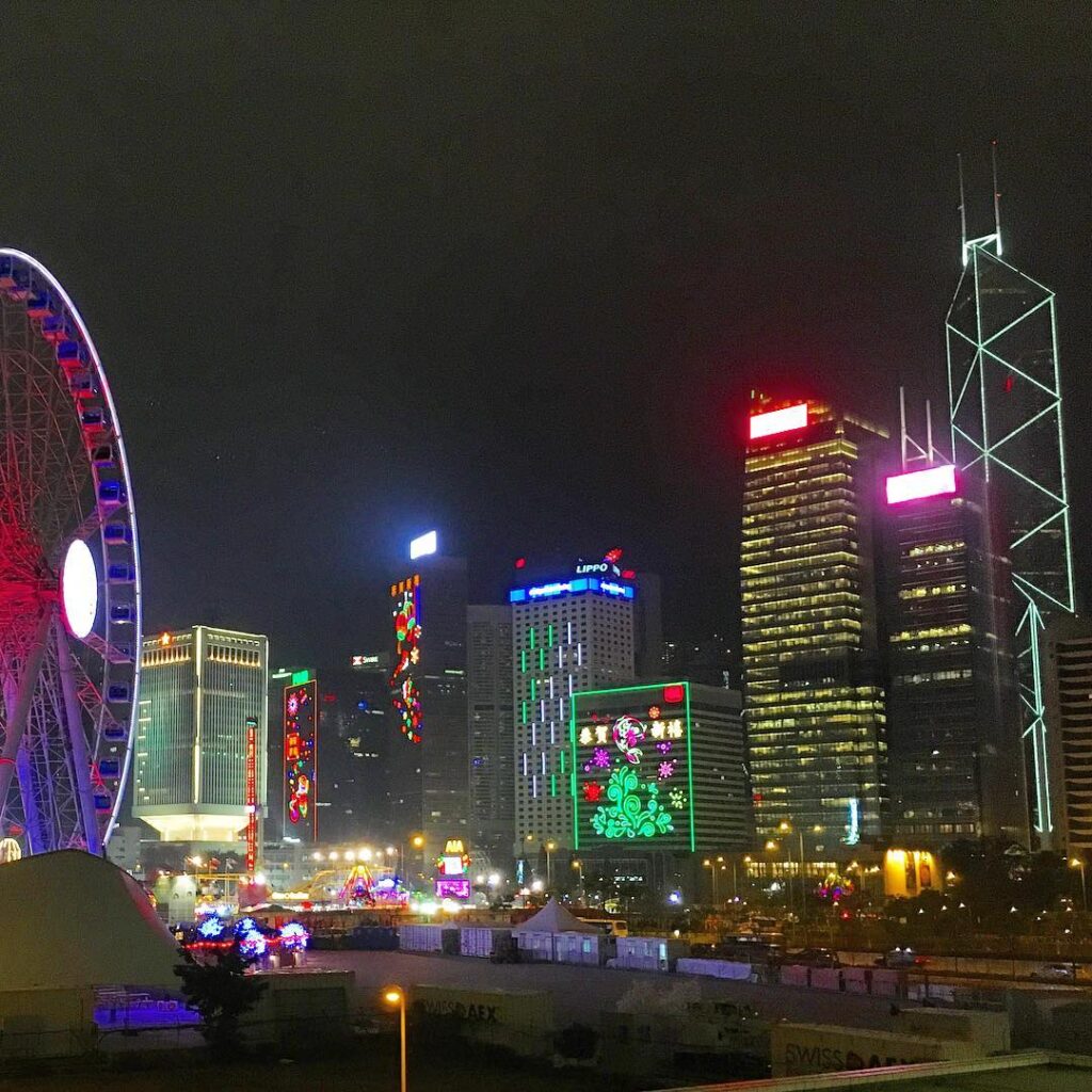 A part of the #HongKong #cityscape. #neon lights of #Central and the #HK #ferriswheel. #hkig