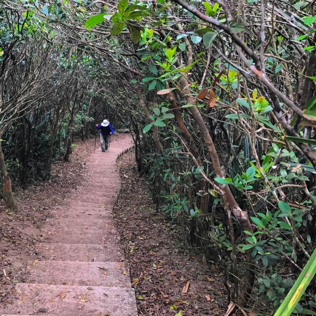 hiking Hong Kong – a hiker climbing up the steps. TheTwins are two back-to-back hills along the WilsonTrail Section 1