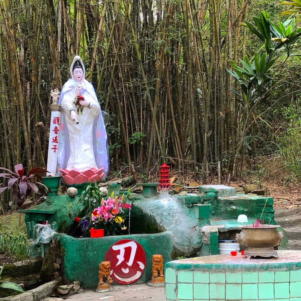 In the middle of the #WilsonTrail Section 2, a #shrine to #GuanYin / #KwunYam, the Chinese #GoddessOfMercy. If you were #hiking at twilight, running across this would be pretty creepy. But there's worse. On the Wilson #Trail Section 3, there's way creepier statues. #HongKong #hk #hkig
