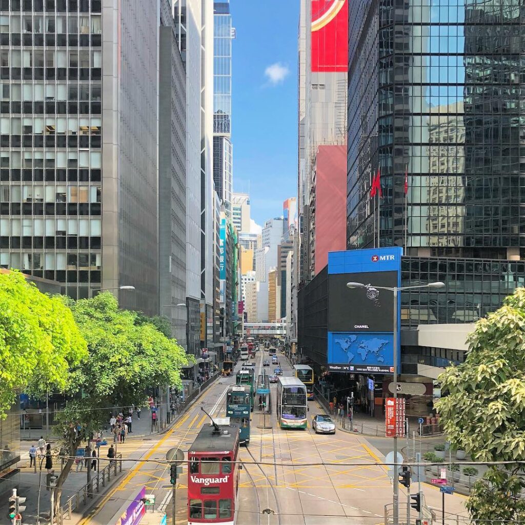 #Central, #HongKong on a clear blue sky day, the buses and #trams are running. #hk #hkig #hktramways