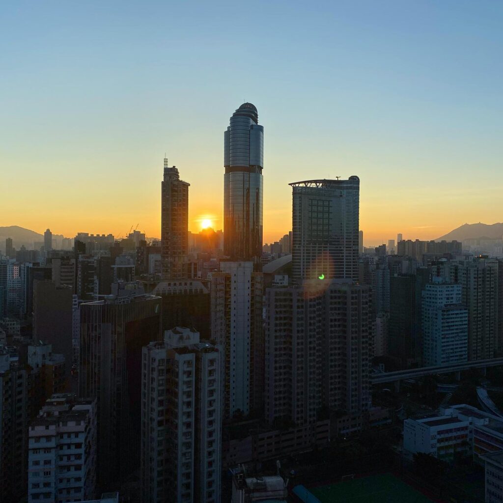 Good morning, Hong Kong! Finally a clear day in HK. A lovely sunrise over LanghamPlace in Mong Kok