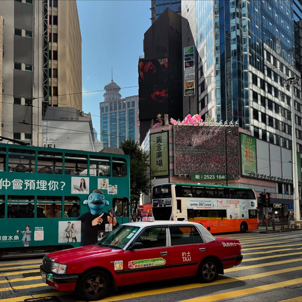 Three modes of #HongKong public transport on display in #CausewayBay. #tram, #bus and #taxi. #hk #hkig