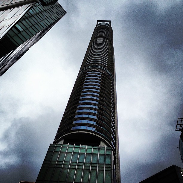 Through the gaps in the buildings and streets, a glimpse of IFC tower
