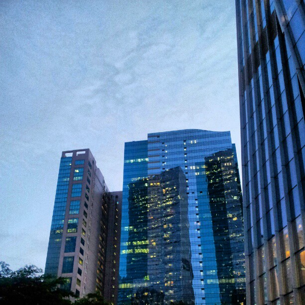 Twilight in the skyscrapers start to light up