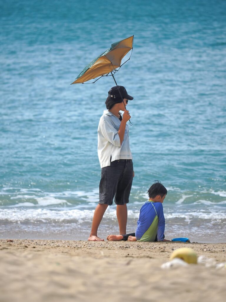 Windy day at the beach. Hap Mun / Half Moon Bay beach