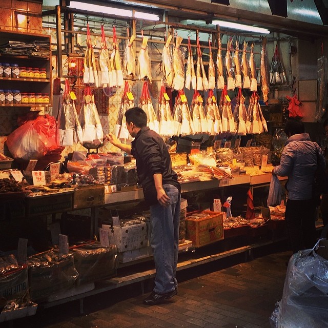 The dried / preserved foods shop. The fish you see hanging are actually saltedfish. Most people wont buy the whole fish