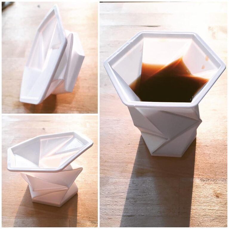 The UpHold coffee cup is a collapsible cup with a design that looks like a crumpled disposable cup. I think it’s