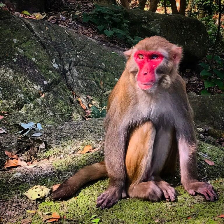 A monkey (likely a one of the macaque family) seen around the LionRockCountryPark area while hiking to LionRock in Hong