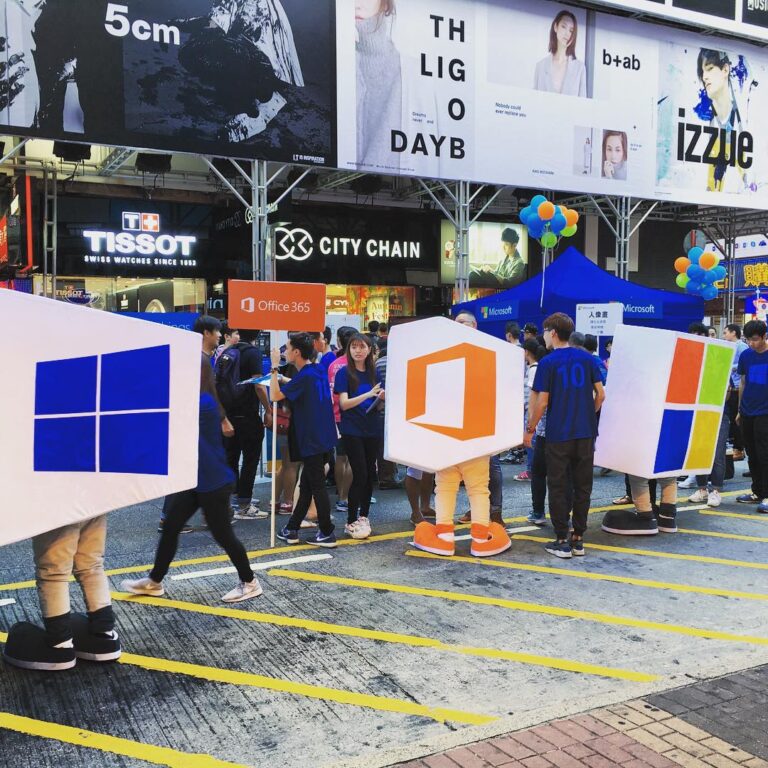 evening on the border of Causeway Bay / Wan Chai. The view of the sun setting in an urbanvalley as seen from the tram
