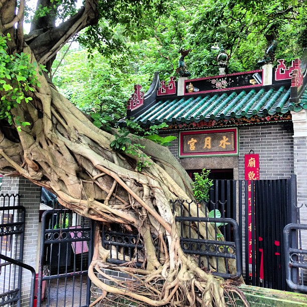 A suspension bridge in the distance. Shrouded by mist / fog / smog / cloud / who-know-what. Forget it Jack, it’s Hong