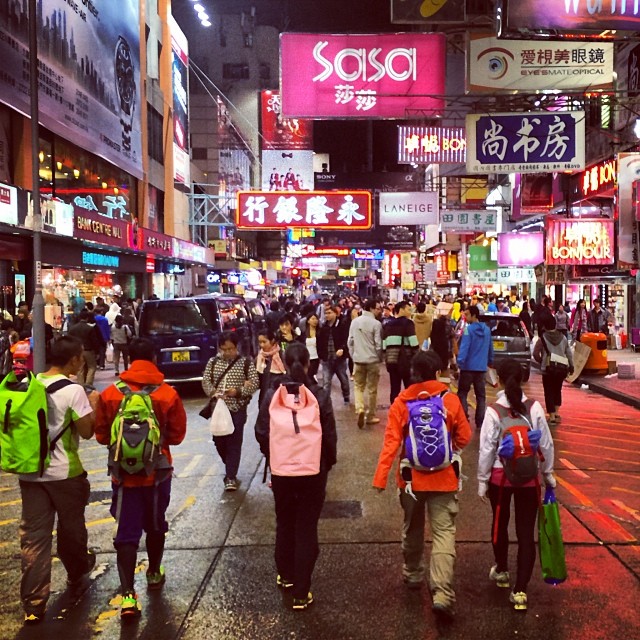 A rainy and cold night in Mong Kok won’t keep people off the streets