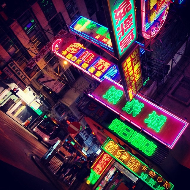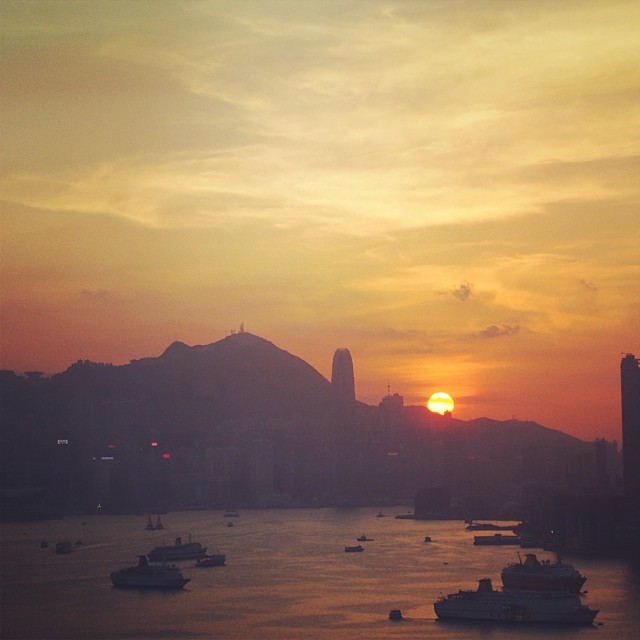 An evening sunset over Hong Kong island. The sun goes down behind HK