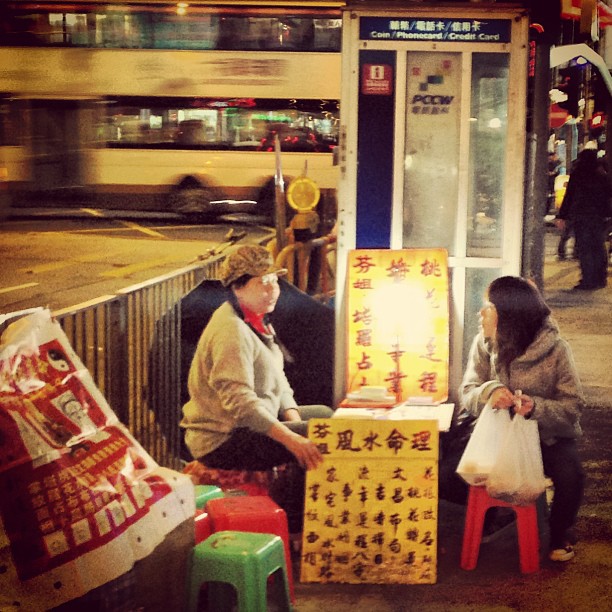 Amidst the neon hustle of Mong Kok – curbside fortunetelling. Amazing Hong Kong