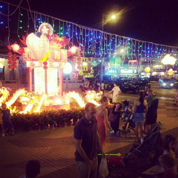 A bunch of Gwailos around a gaudy light-up lantern. Poetic, really