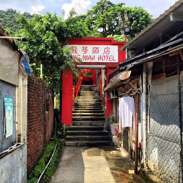 The entrance to LungWahHotel, an old hotel from decades ago in HaWoChe village in Sha Tin. Although way past its glory
