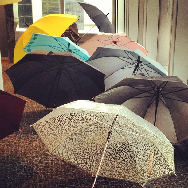 umbrellas in the office on a rainy day