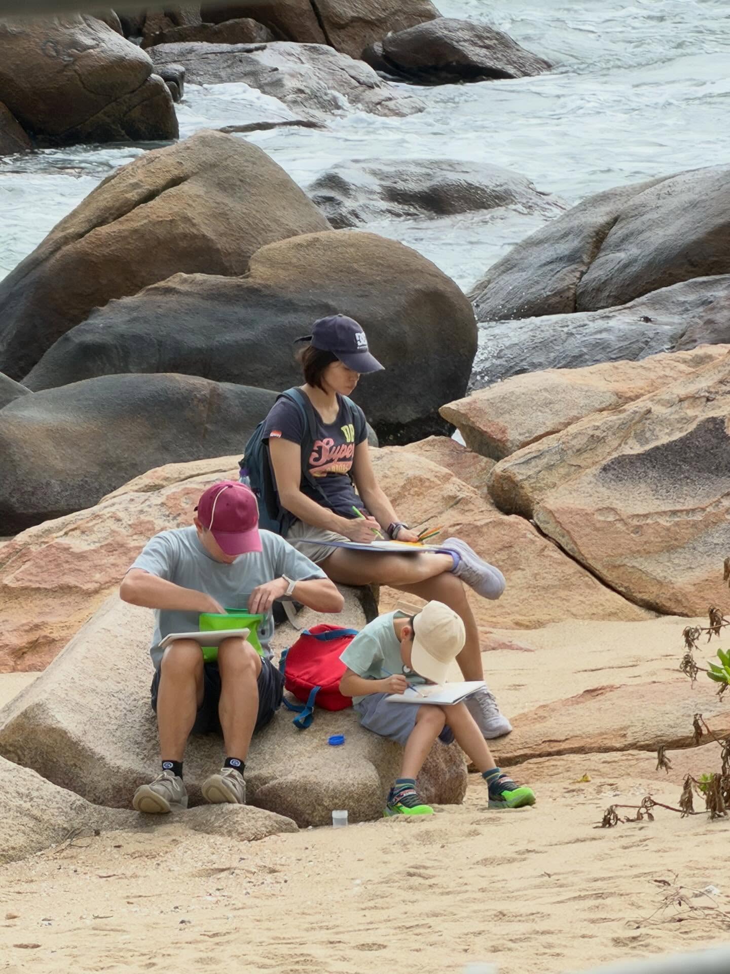 Watercolours and sketches on the beach. A family of artists?